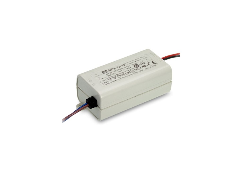 APV-12 je 12 W AC/DC napájecí zdroj pro led pásky s konstantním výstupním napětím. Zdroj je unikátní také díky svým malým rozměrům. Řada APV-12 se vyrábí pro napětí 5 V, 12 V, 15 V, 24 V, které jsou vhodné do nízkopříkonových aplikací. Zdroj má stupeň krytí třídy 2 a nehořlavému plastovému pouzdru 94 V-O je při dodržení instalačních pokynů možnost také instalace na dřevo.