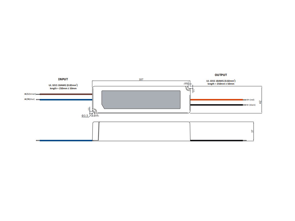 Zařízení disponuje ochranu IP67, díky čemuž je vhodné pro použití v náročnějších podmínkách nebo venkovních aplikacích. Nabízí kompletní sadu ochran: zkrat, přetížení, přepětí i ochranu proti přehřátí podle charakteristiky. Zdroj dosahuje účinnosti až 87 %, má nízké zvlnění, line regulation ±1 % a load regulation až ±2 %. Konstrukce splňuje požadavky Class II (bez zemního vodiče). Zdroj má následující certifikace: EN61000-3-3, EN61000-3-2, EN55024, EN61547, EN55015, EN61000-4-2, -3, -4, -5, -6, -8, -11.