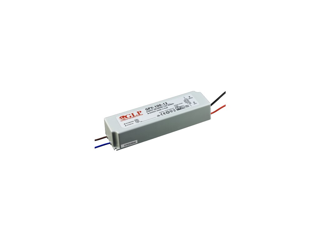 GPV100 W je AC/DC napájecí zdroj pro led pásky s konstantním výstupním napětím. Řada GPV-100 se vyrábí pro napětí 12 V a 24 V, 36 V, které jsou vhodné do nízko-středně příkonových aplikací. Nabízí široký rozsah vstupního AC napětí, ochrany proti zkratu, přetížení a přepětí a je v plastovém pouzdře s krytím IP67. Vhodný pro LED osvětlení do venkovních i vnitřních podmínek, reklamní panely nebo další DC zařízení.