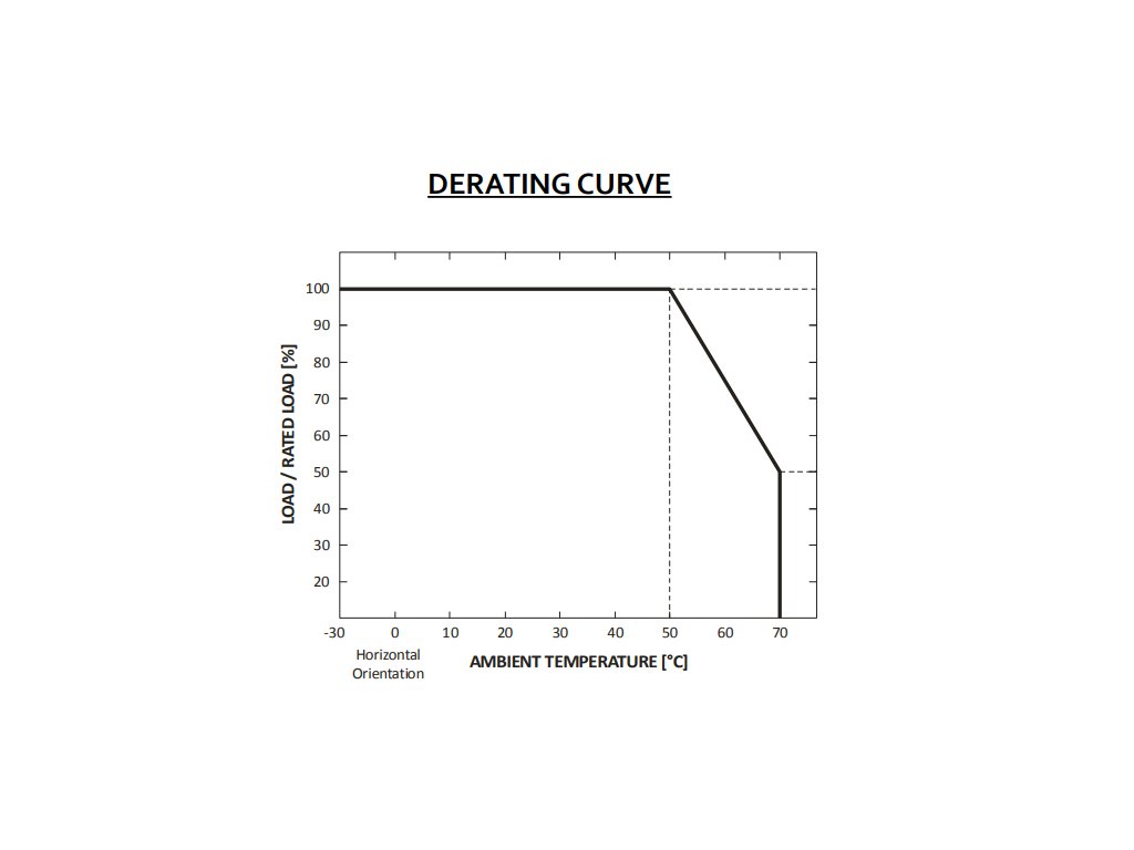 Zařízení je zcela zapouzdřené, chlazené přirozenou konvekcí a ochranu IP67, díky čemuž je vhodné pro použití v náročnějších podmínkách nebo venkovních aplikacích. Nabízí kompletní sadu ochran: zkrat, přetížení, přepětí i ochranu proti přehřátí podle charakteristiky. Zdroj dosahuje účinnosti až 82 %, má nízké zvlnění, line regulation ±1 % a load regulation až ±2 %. Konstrukce splňuje požadavky Class II (bez zemního vodiče). Zdroj má následující certifikace: EN61000-3-3, EN61000-3-2, EN55024, EN61547, EN55015, EN61000-4-2, -3, -4, -5, -6, -8, -11.