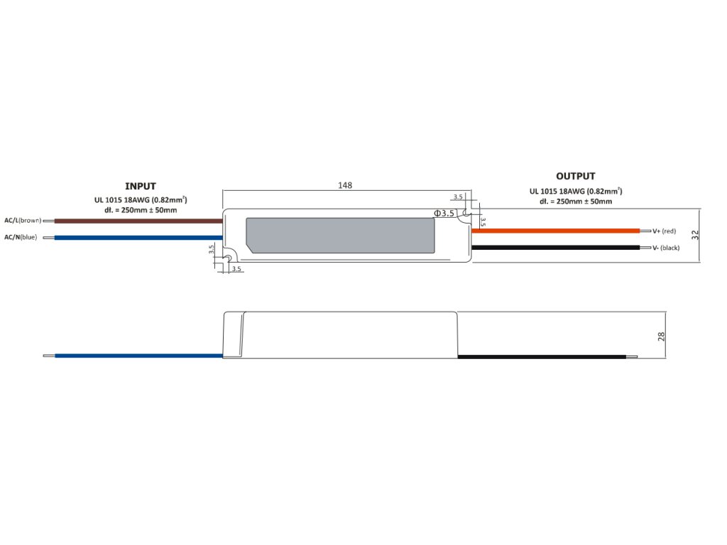 GPV35 W je AC/DC napájecí zdroj pro led pásky s konstantním výstupním napětím. Řada GPV-35 se vyrábí pro napětí 5 V, 12 V, 15 V, 24 V, 36 V které jsou vhodné do nízkopříkonových aplikací. Nabízí široký rozsah vstupního AC napětí, ochrany proti zkratu, přetížení a přepětí a je v plastovém pouzdře s krytím IP67. Vhodný pro LED osvětlení, reklamní panely nebo další DC zařízení.