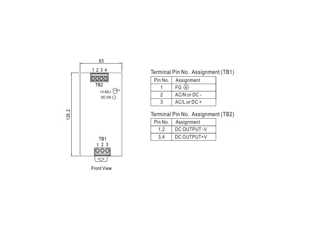Model NDR-240 je vybaven kovovým pouzdrem, které zlepšuje odvod tepla. Díky účinnosti až 90 % může být zdroj provozován při okolních teplotách od -20 °C do +70 °C s přirozeným prouděním vzduchu a splňuje normu BS EN/EN61000-3-2, kterou Evropská unie stanovuje pro omezení harmonických proudů. Vestavěná aktivní korekce účiníku PFC. Na vstupní straně zdroj obsahuje svorky k připojení vstupního napájecího napětí. Na výstupní straně obsahuje dva kladné a dva záporné póly 48V DC.