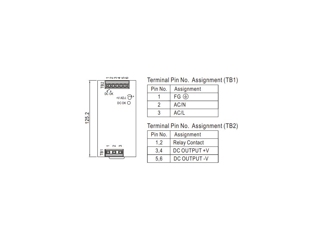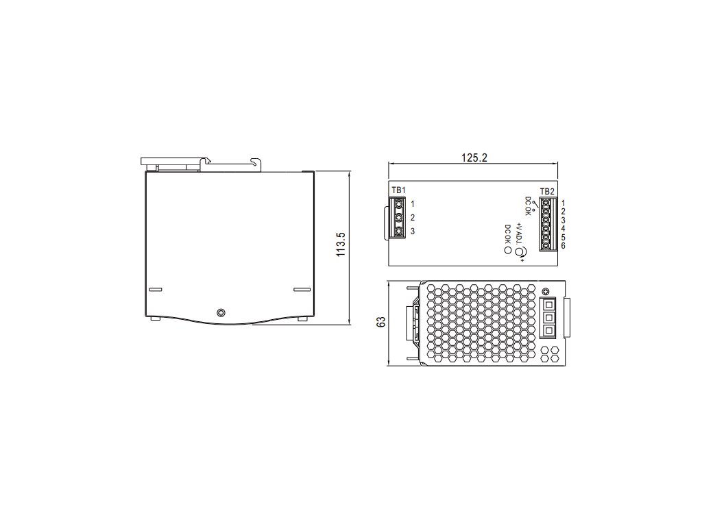 SDR-240 je jednofázový 240W napájecí zdroj na DIN lištu vhodný pro montáž na montážní lišty TS-35/7,5 nebo TS-35/15.