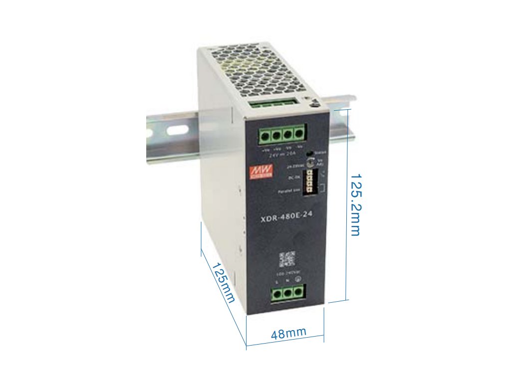 Řada XDR-480E představuje ekonomický a ultratenký průmyslový 480W AC/DC napájecí zdroj na DIN lištu. Mezi hlavní vlastnosti této řady patří tenké 30mm pouzdro, které šetří instalační prostor v koncovém systému, a ultraširoký vstupní rozsah 85-264Vac vhodný pro celosvětové použití. Maximální účinnost 95,5 % a nízká spotřeba energie v pohotovostním režimu <1W zajišťují úsporu energie a snížení uhlíkové stopy. Je vybaven vestavěným výstupem s konstantním proudem, bezventilátorovou konstrukcí, širokým rozsahem provozních teplot od -40 do +70 °C (až +50 °C při plném zatížení), shodou s OVCIII a vestavěným signálem DC OK. Díky komplexním ochranným funkcím, úplným bezpečnostním certifikacím a tříleté záruce je řada XDR-75E kompaktním, výkonným a vysoce spolehlivým napájecím zdrojem na DIN lištu.